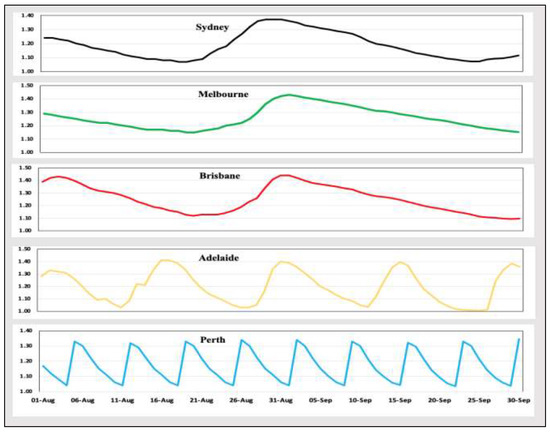 Figure 1. The daily average price of ULP in Australian capital cities, August–September 2020.