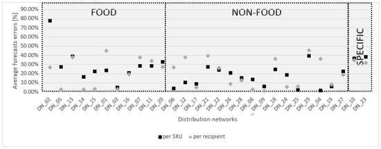 Average forecast errors in the particular DN sizes and types (food, non-food and specific).