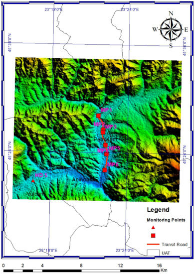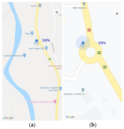 On these premises, the designed monitoring program was based on measurements in six monitoring points located along the transit road of Petroșani (Figure 2).