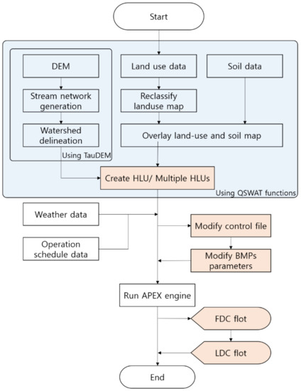 - Kim, M.K.; Choi, S.K.; Jung, G.B.; Kim, M.H.; Hong, S.C.; So, K.H.; Jeong, J.H. APEX (agricultural policy/environmental eXtender) model: An emerging tool for agricultural environmental analyses. Korean J. Soil Sci. Fertil. 2014, 47, 187–190. [Google Scholar] [CrossRef][Green Version]