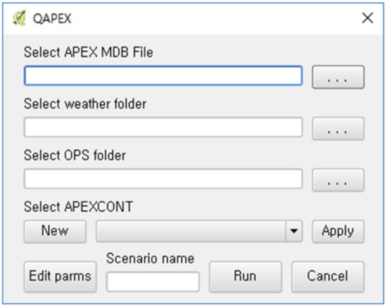 - Feng, Q.; Engel, B.A.; Flanagan, D.C.; Huang, C.; Yen, H.; Yang, L. Design and development of a web-based interface for the agricultural policy environmental eXtender (APEX) model. Environ. Model. Softw. 2019, 111, 368–374. [Google Scholar] [CrossRef]