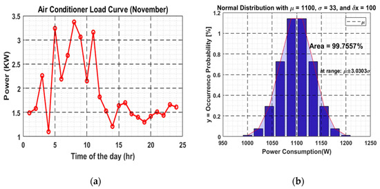 (a) Air conditioner load profile (November); (b) Distribution data with standard deviation of 33.