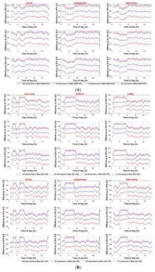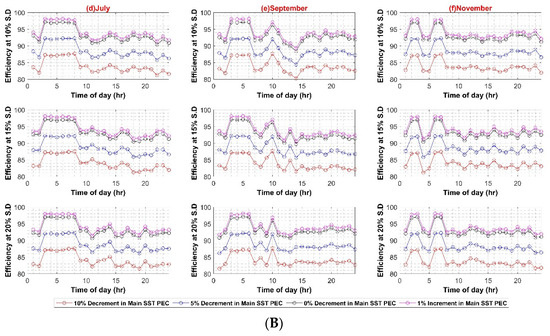Figure A1, Figure A2 and Figure A3 present the sensitivity analysis of AC system with different parameters such as PV capacity variation, individual PECs variations attach to each load category etc., while Figure A4, Figure A5, Figure A6 and Figure A7 present the sensitivity analysis of DC system.