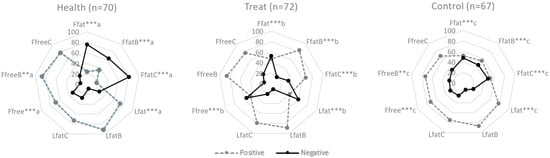 | Products | Ffat a,b,c | FfatB a,b,c | FfatC a,b,c | Lfat a,b,c | LfatB | LfatC | Ffree a,c | FfreeB a,c | FfreeC | |