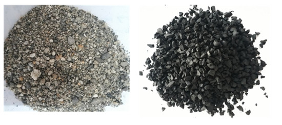- Issa, C.A.; Salem, G. Utilization of recycled crumb rubber as fine aggregates in concrete mix design. Constr. Build. Mater. 2013, 42, 48–52. [Google Scholar] [CrossRef]