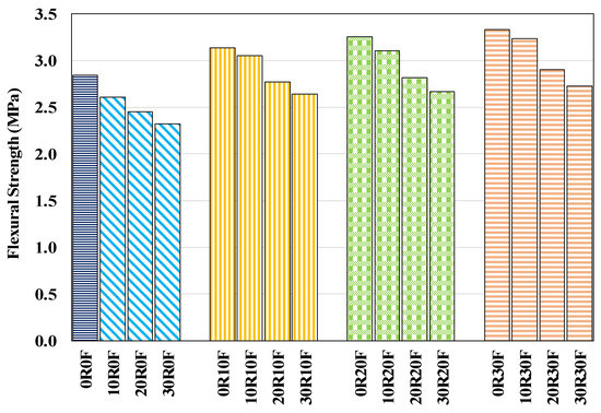 For composite prisms with repair mix composition of 0R30F, 20R30F, and 30R30F, the average flexural strength of composite prisms was 9 MPa, 10.5 MPa, and 14 MPa with the increment rate of 221%, 275%, and 400%, respectively.