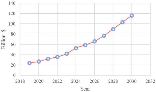 Though technological sophistication is estimated to bring down the emissions from the ICEs by around 1.9% annually up to 2040, it is foreseeable that the growth and vast adaptation of EVs would reach around 30% of the world’s passenger vehicle fleet by 2032 []. In 2018, the IEA projected that the global EV counts would reach around 130 million by 2030 []. Such a significant EV adoption would impact the existing power grid and energy sector. Sporadic charging and discharging behavior of the EVs in use will affect the system’s power quality and load factor; the traditional grids with transformers will be overloaded during the peak hours of operation, and renewable grids with power electronics converters will be faced with increased total harmonics distortion []. Thus, the power system needs reinforcement to cope with variable EV loads. However, upgrading distributed generation (DG) infrastructure and grid utilities requires extra cost margins, making the scheme uneconomical. One effective way is to consider the EV charging station as a high-capacity energy storage device and implement the vehicle-to-grid (V2G) technique.