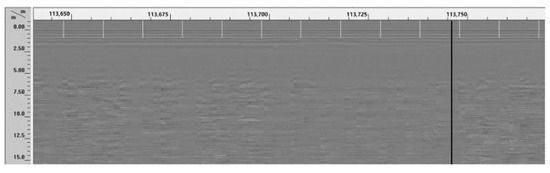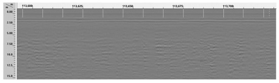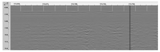 Four survey lines were arranged. The radar profile near the underpass of each survey line is shown in Figure 15, Figure 16, Figure 17 and Figure 18 and the black line in the figure indicates the position of the underpass; the left bank survey line numbers were LZ1 and LZ2 (See Figure 15 and Figure 16) and the right bank survey line numbers were LY1 and LY2. The test ranges of the four survey lines were as follows: