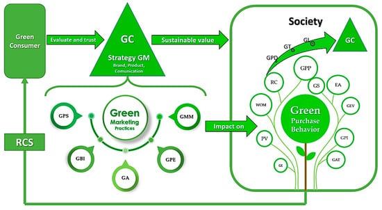 In this way, GM becomes a tool that allows for a more sustainable society through the design and development of products, market development, and communication and advertising strategies, since it is not only focused on satisfying the needs of the current generation but also on transcending to future generations through a message that promotes awareness of consumption, oriented to the conservation of the environment [96,97].