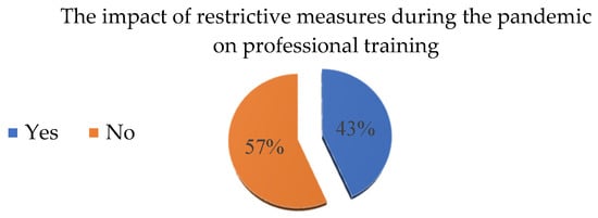 Concerning the impact of social distancing during the pandemic on students’ professional training, 57% of the respondents did not feel that they were affected (Figure 2).