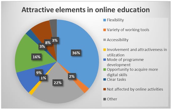 Figure 11 indicates that the online activities surprised students, particularly because of the flexibility of activities (36%), accessibility to platforms/materials/resources (22%), and opportunity to acquire more digital skills (16%).