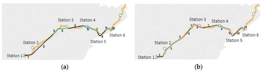 - Wang, P.; Goverde, R.M.P. Multi-Train Trajectory Optimization for Energy Efficiency and Delay Recovery on Single-Track Railway Lines. Transp. Res. Part B: Methodol. 2017, 105, 340–361. [Google Scholar] [CrossRef]