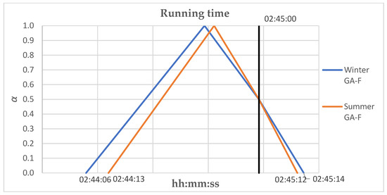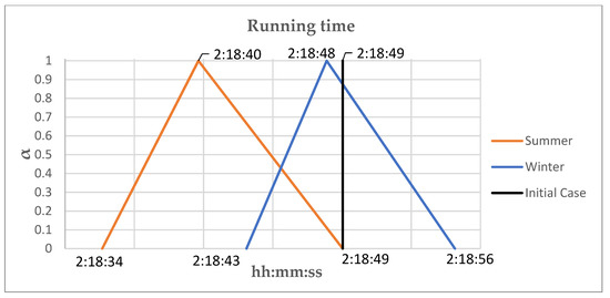 The main advantage of fuzzy logic modelling is the ability to handle imprecise or incomplete information. Additionally, a positive feature is its flexibility and simplicity to be developed and implemented to obtain efficient calculations. That is why many studies have applied fuzzy logic in train operation models. In study [71], the train service provider and the infrastructure provider have been modelled as software agents, and the negotiation for a train schedule and the associated track access charge as a prioritised fuzzy constrain satisfaction problem. In study [72], predictive fuzzy control is used for carrying out the train dwell-time control in an event-driven framework. A methodology for predictive fuzzy control in an event-driven environment for multi-objective decision making on DC railway systems has been presented in [73]. In study [74], an approach within the fuzzy framework for tackling the complexity of multidimensional service evaluations and the judgment on the goodness of the schedule has been proposed. In study [75], the authors investigated a passenger train timetable problem with fuzzy passenger demand. The paper presented by [76] exposed a framework to evaluate the logistics performance of intermodal freight transportation by applying fuzzy set techniques. A multilevelled distributed railway traffic fuzzy control system is proposed in [77]. An assistant support system for railway traffic control is described in [78] making use of fuzzy knowledge. A fuzzy optimisation model for rescheduling high-speed timetables is proposed in [11], focusing this work on punctuality and passengers’ affection without considering energy minimisation. In studies [79,80], a fuzzy model is proposed for an Automatic Train Control system. In studies [45,59], uncertainty in the manual driving application of the speed regulation command is modelled using fuzzy numbers. In study [16], the optimal speed profile in urban DC railways is found with a GA, where the energy consumption and the running time are the fuzzy results. A fuzzy model of delays and punctuality constraints is proposed in [46] for the offline design of timetables when efficient driving is applied. The algorithm proposed in [54] is used for urban ATO operation including uncertainty in the mass, generating optimal energy–time Pareto curves of speed profiles. Fuzzy logic is applied in [81] to detect the railway wheelset conicity as a measure of the deterioration. In study [82], a fuzzy model is used to evaluate the potential risks of railway crossings. As can be seen, climatological parameters and their associated uncertainty have not been modelled previously; therefore, this possible affection to the railway operation has not been considered.