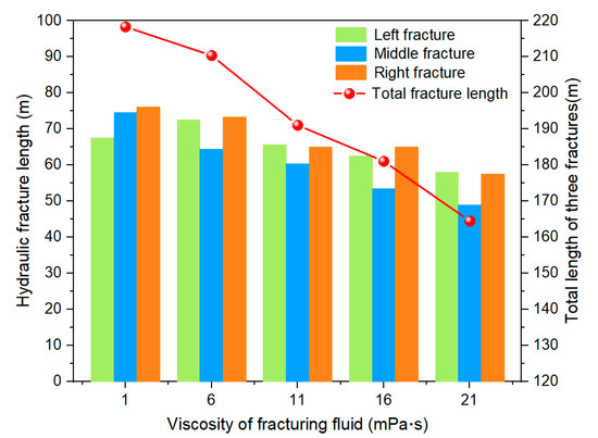 Variation of each cluster of hydraulic fractures’ length with fracturing fluid viscosity.
