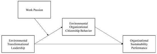 The indirect relationship between environmental transformational leadership and organizational sustainability performance via environmental organizational citizenship behavior is moderated by work passion such that the relationship is stronger when employees have high work passion rather than low.