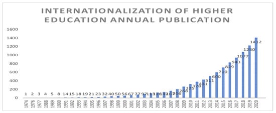 In 2013, Englander and Uzuner-Smith [28] supported the claim that scientific journals serve as an important medium in channeling any research findings within the relevant international scientific communities [29,30]. For that reason, detailed analysis of contributions published in leading journals allow the identification of research trends, subjects of interest, and prominent articles and contributors (e.g., Huisman [31]). This study is intended to establish bibliometric mapping off higher education internationalization research achievements. It can thus be further used to identify comprehensive developments and global trends, especially within the field of higher education internationalization during the period of 1974 to 2020.