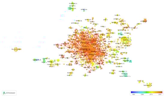 Figure 3 contains an overlay visualisation of the Scopus results with LinLog/modularity normalisation, prepared using VOSviewer software to analyse and visualise the relationships among the authors, countries, journals, co-citations, and terms [45,46]. The energy-based (force-based) technique has advantages such as good layout quality, ease of implementation, and code flexibility. It is based on the assumption that there is an attraction force between the connected vertices while all vertices repulse each other [47]. The LinLog model is an energy algorithm to provide an efficient way to minimise the energy in our force-directed cluster graph. The lowest energy is achieved by minimising the ratio between the average edge length to average distance to all nodes. The LinLog model provides the minimal ration of the arithmetic mean of the edges to the geometrical mean of node distances. Therefore, the nodes were assigned in a network to clusters. A cluster is a set of closely related nodes. Each node in a network is assigned to exactly one cluster, while the number of clusters is determined by a resolution parameter—the higher the value of this parameter, the larger the number of clusters.