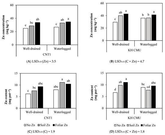 - Tuiwong, P.; Lordkaew, S.; Prom-u-thai, C. Improving grain zinc concentration in wetland and upland rice varieties grown under waterlogged and well-drained soils by applying zinc fertilizer. Agronomy 2021, 11, 554. [Google Scholar] [CrossRef]
