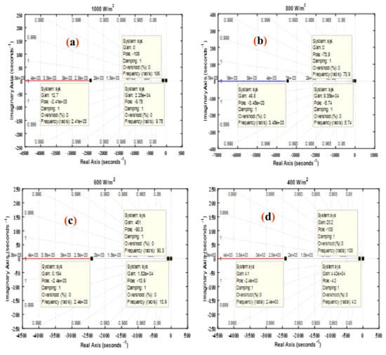 Under Equation (6) the stability test is carried out for different irradiance levels with their respective optimum controller gains.
