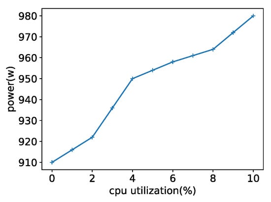 Previously, a number of papers have modeled the computing energy consumption in data centers [17]. They have constructed different models that are tailored to their respective research perspectives. As the focus of this paper is not on the details of the energy consumption model, a regression model, which is very popular and easy to understand, was chosen for this paper. In the regression model, the relationship between the power consumption of a server’s functional units (CPU, memory, storage, etc.) and performance metrics is considered. The computing energy consumption of a server is characterized by capturing the fixed or idle power consumption as well as the variation in activity across the server’s functional units.