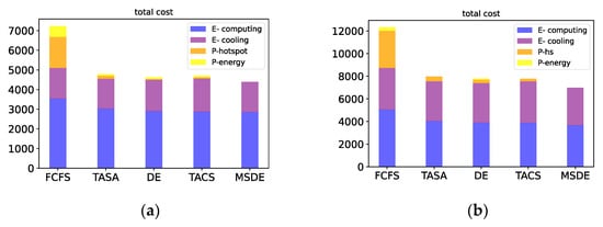 where C is the total cost of a data center in this paper; e is the penalty parameter for energy overload; and is the nominal parameter for average of power. Ccomputing is the energy consumption of computing; Ccooling is the energy consumption of cooling; Phn is the number penalty for hot spot presence; Pht is the time penalty for hot spot presence; T0 is the limit temperature in data centers; tj is the time when hot spots disappear; a is the penalty parameter for the number of hotspots appearance, which is related to total power; and b is the penalty parameter for the time of hotspots presence. These two parameters directly determine the performance of our approach, and their specific determination method is obtained by multiple experimental comparisons.