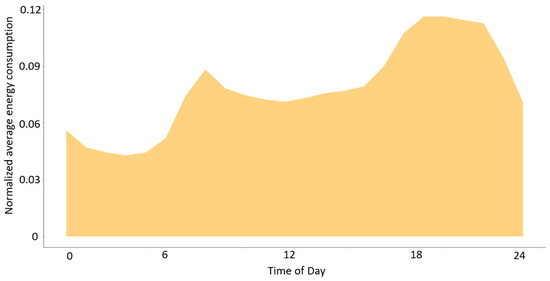The characteristics of the households were determined through a survey that was distributed to all households in the living laboratory. The household shown in Figure 4 self-reported that there were three occupants, two of whom were between 40–59 years of age (one male and one female), and the third person was between 18–24 years of age (female). Additionally, the male adult had a full-time job that required him to work away from home. The female adult reported she worked from home, and the young female was a full-time student. The clusters that consist of peaks during the day can be explained by the female adult and young female. Working from home and studying full-time can result in household occupancy during the day that is not observed with typical working lifestyles [73,74]. This can result in higher energy consumption during the day compared to a household with all occupants working away from home. Furthermore, studying full-time can result in variability, as class schedules are not the same every day. This will result in the young female’s routines varying significantly, and her occupancy of the home will be irregular, resulting in variable energy consumption.