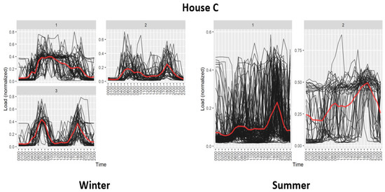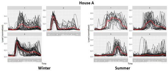 Clustering analysis was conducted on the summer and winter data for House A to identify the different routines followed during these two seasons, as shown in Figure 8.
