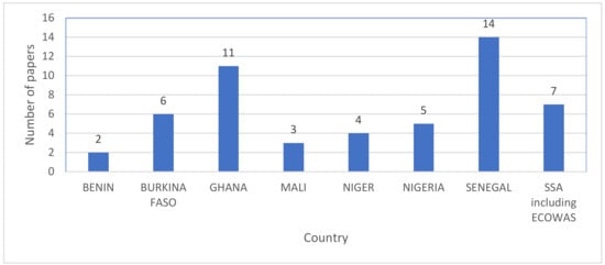 Distribution of papers per ECOWAS countries from 2013 to 2022.