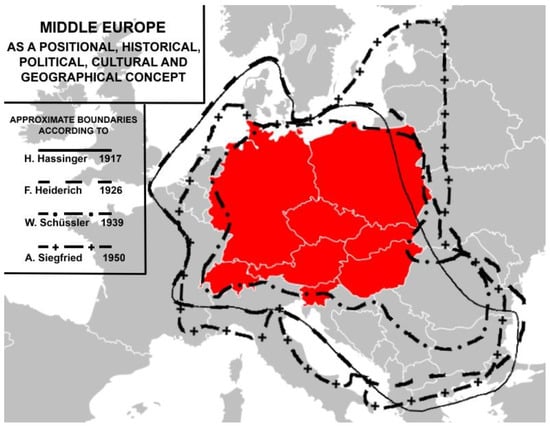 - Sinnhuber, K.A. Central Europe: Mitteleuropa: Europe Centrale: An Analysis of a Geographical Term. Trans. Pap. (Inst. Br. Geogr.) 1954, 29, 15–39. [Google Scholar] [CrossRef]