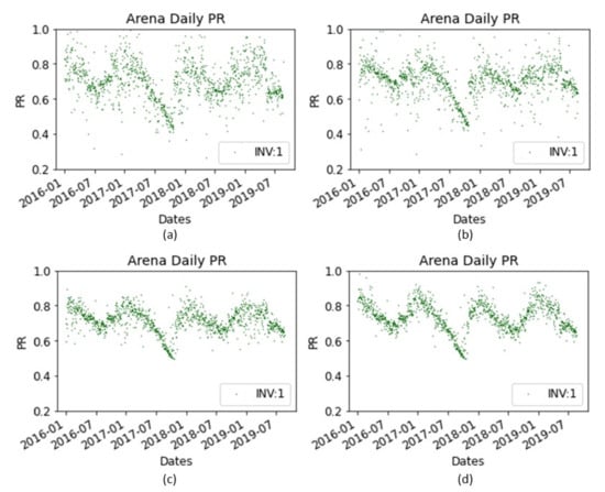 - Paudyal, B.; Bolen, M.; Fregosi, D. PV Plant Performance Loss Rate Assessment: Significance of Data Filtering and Aggregation. In Proceedings of the 2019 IEEE 46th Photovoltaic Specialists Conference (PVSC), Chicago, IL, USA, 16–21 June 2019; pp. 866–869. [Google Scholar] [CrossRef]