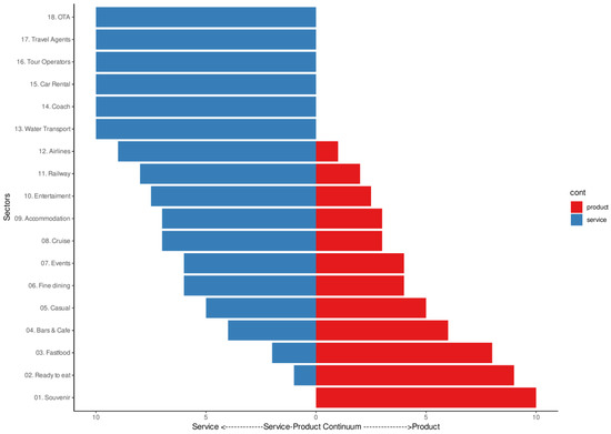 Tourism Service–Product Continuum (Author’s own illustration adopted from [15,16]).