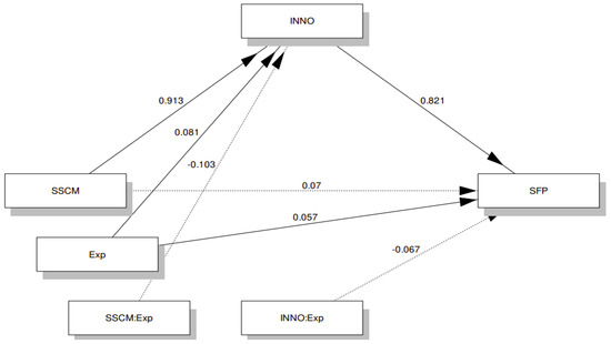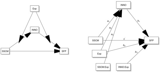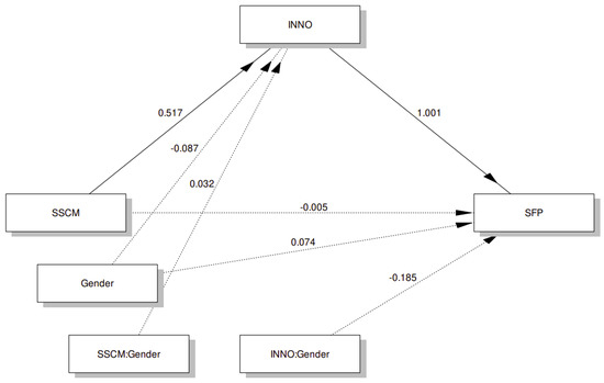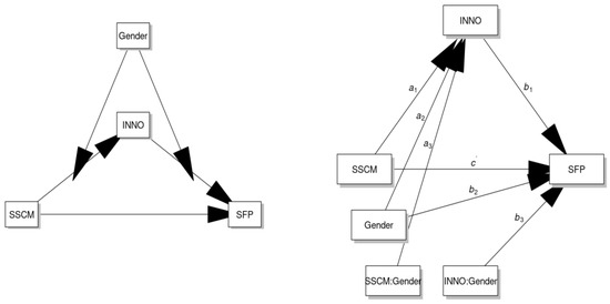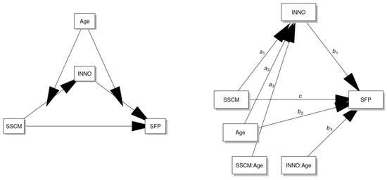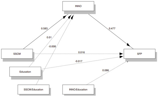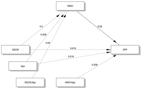 The moderating effects of socio-demographic factors such as age, gender, experience and education can bring more insight into the impact variations when a new variable is introduced [75,76]. The same has been tested in highly competitive and uncertain industries such as tourism [77,78,79,80,81,82]; this is because decision-making in such dynamic industries involves risks and the socio-demographic factors may moderate the relationship. However, a majority of that research focuses on understanding the customer/consumer markets. To the best of the authors’ knowledge, the moderation effects of social factors such as age, gender, experience, and education in the mediation effects of innovation between SSCM and SFP have not been tested. Therefore the following hypotheses (Figure 5, Figure 6, Figure 7 and Figure 8) were formed.