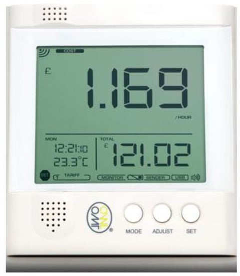 If participants met the requirements of the study, they were invited to participate. In the first interview, they were interviewed about household electricity behaviour, travel behaviour, and social networks, and an electric display was installed in their homes. The electricity display (OWL + USB) was chosen because it was readily available, the installation was straightforward (it did not require the use of a specialist or 3rd party), and it was user-friendly [62]. For an illustration of the electricity display, please refer to Figure 1.