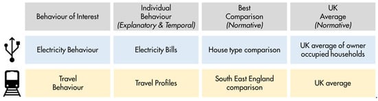 - Al-Chalabi, M.; Banister, D.; Brand, C. On target? Examining the effects of information displays on household energy and travel behaviour in Oxford, United Kingdom. Energy Res. Soc. Sci. 2018, 44, 278–290. [Google Scholar] [CrossRef]
