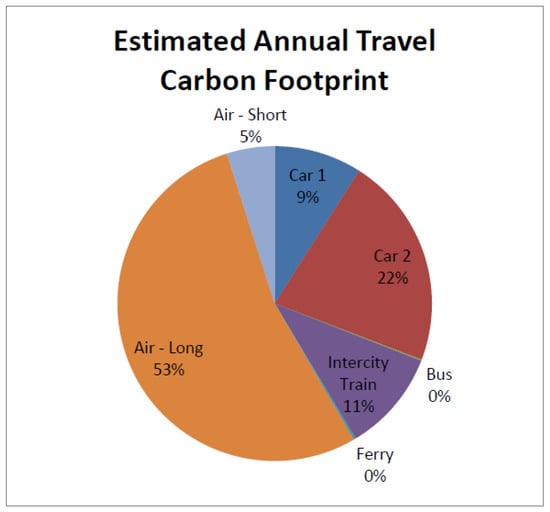 There are a variety of mechanisms that examine travel behaviour, including travel diaries [64], activity diaries [65], or travel profiles [66]. Each method captures different travel information. Although a day-to-day travel diary can give an understanding of how the individual travels [67], it does not allow the researcher an opportunity to develop an understanding of how the individual generally travels over the course of six months or a year. A travel profile, on the other hand, quickly shows how frequently the individual uses a specific type of transport (public transport, car use, and flight use) while also providing a platform to inquire why they engage in some modes but not others (if this is the case). Therefore, travel profiles were used to develop an estimated understanding of travel patterns.
