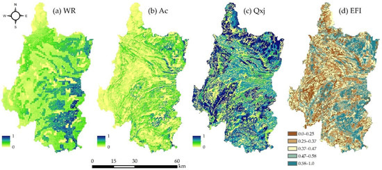 Spatial distribution of the WR, Ac, Qxj, and EFI.