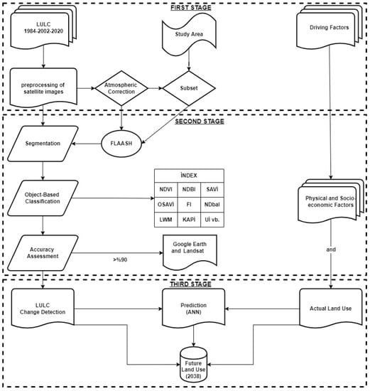 - Atay Kaya, İ.; Kut Görgün, E. Land Use and Land Cover Change Monitoring in Bandırma (Turkey) Using Remote Sensing and Geographic Information Systems. Environ. Monit. Assess. 2020, 192, 430. [Google Scholar] [CrossRef]