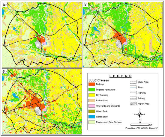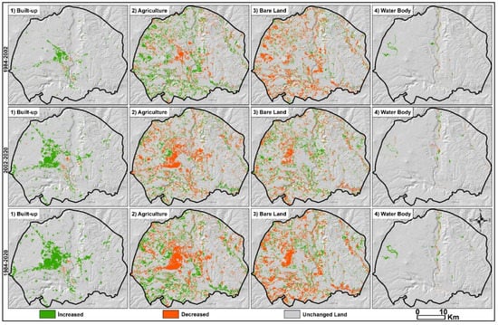 | LULC Classes | km2 | % | km2 | % | km2 | % |