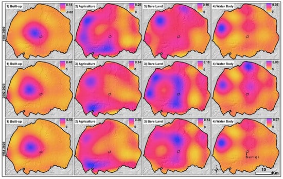 - Alan, İ.; Demirörs, Z.; Bayar, R.; Karabacak, K. Markov Zincirleri Temelli Arazi Örtüsü Tahmin Modeli Geliştirilmesi: Ankara İli Örneği. lnternational J. Geogr. Geogr. Educ. 2020, 42, 650–667. [Google Scholar] [CrossRef]