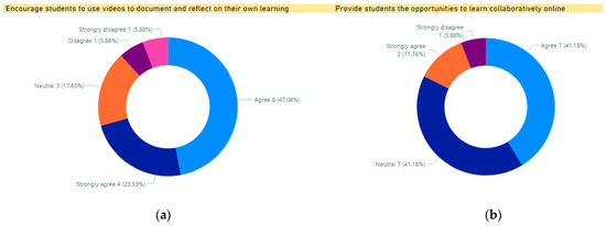 Faculty perceptions related to online learning: (a) encourage students to use videos to document and reflect on their own learning, (b) provide students with the opportunities to learn collaboratively online.