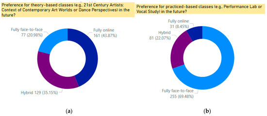 Undergraduate students’ preferences for (a) theory-based classes, (b) practice-based classes.