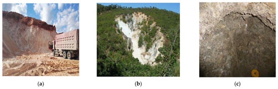 - Wang, P.P.; Yao, J.; Jiang, L. Characteristics of dolomite sanding in Guizhou and its influence on tunnel support structure. J. Guizhou Univ. Nat. Sci. Ed. 2019, 36, 44–48. [Google Scholar]