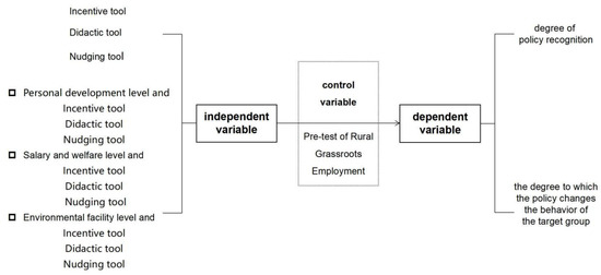 In China, the majority of policies are in line with public desires, but there are a few policies that the government must implement based on public interests and fairness, and the public’s acceptance of these policies is not guaranteed. In the COVID-19 era, countries face numerous social problems, the most significant of which is the employment issue. In 2022, there are 1076 million college graduates of all levels and types, surpassing the million people’s Congress mark for the first time in China. This represents a net increase of 1.67 million compared with 2021. The employment outlook is bleak. In 2016, a number of researchers investigated and analyzed the perspectives of college students on job selection and employment willingness. The survey results revealed that 91.6% of college students preferred to work in large cities such as Beijing, Shanghai, and Guangzhou or in first- and second-tier cities such as those on the eastern coast, while only 2.2% desired to work in rural communities [14]. Against the backdrop of the epidemic, the new first-tier cities (32.40%) accounted for the greatest proportion of new graduates’ employment in 2021, while the proportion of employment in townships and villages remained below 5% [15]. In recent years, approximately 20% of college graduates were employed at the grassroots level, while 2.1% were employed at the grassroots level in rural areas. China’s fundamental social structure is still divided into an urban–rural dual structure. There are significant differences between urban and rural areas in terms of economic development, population quality, and the quality of public services, among others. The majority of graduates do not choose rural grassroots employment based on factors such as pay, working conditions, and advancement opportunities. Even if they choose rural grassroots employment, the majority of graduates use it as a stepping stone rather than attempting to establish themselves at the grassroots level. The remaining portion is eager for employment and chooses it reluctantly because of pressure from society, families, and other factors. It is not difficult to see, in light of the data and current situation research, that the rural grassroots employment policy for college students has characteristics that are in direct opposition to policy objectives. This paper uses the rural grassroots employment policy for Chinese college students as an example to test whether the nudging policy tools still have obvious advantages in matching this policy content and to consider how to achieve the optimal matching effect between policy content and policy tools.