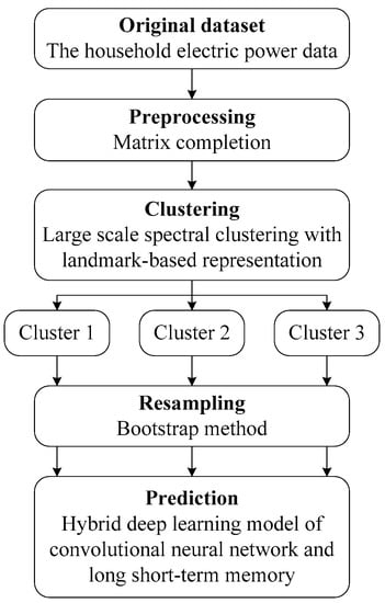 Figure 7 sketches the framework of the proposed novel deep learning model. In this figure, the structure of LSC–CNN–LSTM mainly includes input feature vector module, large scale spectral clustering model, resampling module, CNN feature extraction module and sequence training prediction module.