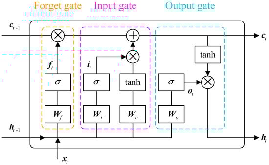 Figure 6 gives the architecture of an LSTM unit. There exist three types of gates in LSTM, i.e., input gate, forgetting gate and output gate. The first gate controls the input of new information in the memory cell. The second gate is response for whether previous information should be forgotten from memory cells. The last gate controls the output of information. The information is transmitted in the following order. The current information is first passed through the input gate to see whether there is input information. The second step is to judge whether the forgetting gate chooses to forget the information in the memory cell. Finally, the available information is further transmitted the output gate to judge whether to output the information at that moment.
