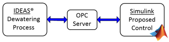 The framework used to evaluate the control strategy works via an OPC (open platform communication) connection between Simulink (OPC client) and the IDEAS dynamic process simulator. In this framework, the OPC works as a bridge between IDEAS and Simulink. The OPC client uses the OPC server to obtain data from or send commands to the simulator. Figure 7 illustrates the framework of the control system with the simulator.