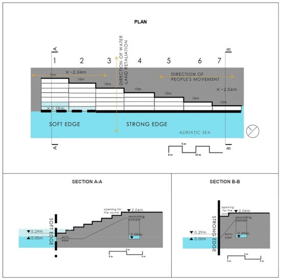 Sea Organs in Zadar—plan, section A-A, section B-B. Source: own.