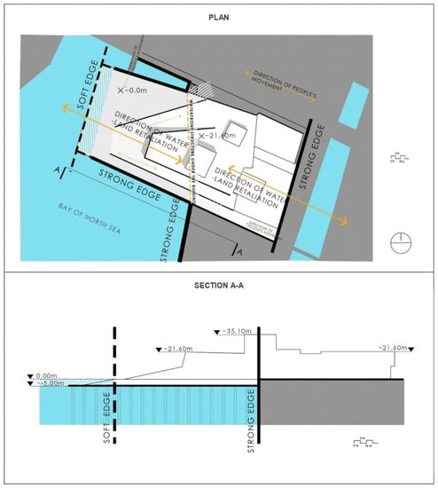 In relation to waterfronts the concept of “porosity” is defined as the discontinuity of boundaries of structures (e.g., walls, building frontages, rows of trees) surrounding and shaping the edges of urban blue public spaces [2]. While the “permeability” of the waterfront is understood as an ability of water to penetrate and flood the structure situated on the land–water edge, partially or fully, this results in the occurrence of a transition zone of a specific wide existing in between the two environments, instead of a sharp-contact land–water edge. Therefore, as the second concept refers to the land–water edge, which is the focus of this research, in this work the term “permeability” is used.