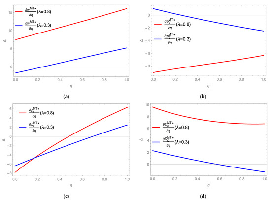 Corollary 3 (1) indicates the sales effort, the retail and the wholesale price reductions, with the consumer’s free-riding degree η. The influence of free-riding behavior on online sales prices depends on cross-price sensitivity. This conclusion is similar to Corollary 1 (1). Therefore, the principle will not be elaborated on in detail.