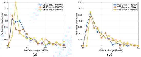 - Finally, using the VESS operation, the peak demand is effectively reduced, as shown in Figure 7. Peak-demand reduction can improve the system efficiency and defer the facility investment cost of the utility grid. It implies that the units in the SEC and the utility grid benefit enhancement can be used to measure the social welfare improvement.